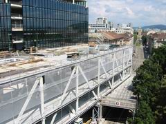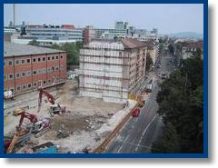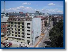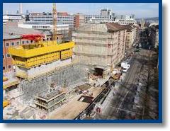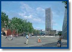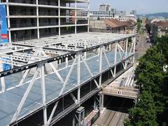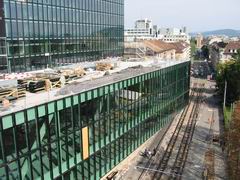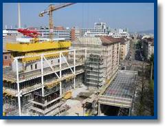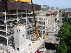 Messeturm (Fotomontage) Die Entstehung des neuen Messturmes kann sehr gut vom Muba-Parking im 8. Stock beobachtet werden. |