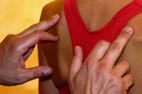 durch leichten Druck ertastet und zeigen Verspannungen einzelner Muskeln.