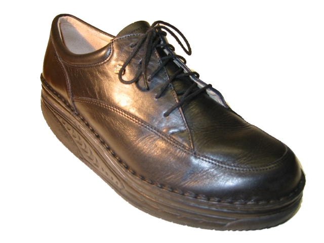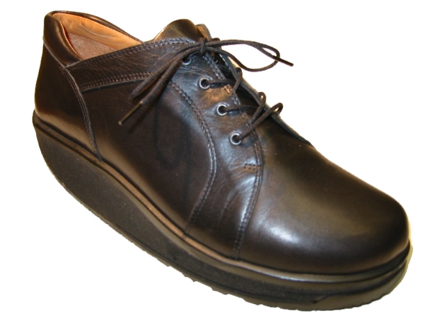 Welcher Effekt hat das Stehen auf MBT? Gegenüber flachen, stabilen Schuhen lässt sich der Körper nicht einfach passiv in die Bänder hängen, sondern ist durch die weiche MBT Sohle motiviert den Körper möglichst im Lot zu halten, um so beim Balancieren Energie zu sparen. Dafür aktiviert der Körper die kleinen Rückenmuskeln zwischen den Wirbelkörpern und entlastet die Bandscheiben bei einer gleichzeitig aufrechteren Haltung. Da nun beim Stehen die Wadenmuskeln ebenfalls um +38% stärker aktiv sind, funktioniert die Muskelpumpe d.h. der venöse Blutrückfluss wesentlich besser. Das bringt Kunden mit Venenproblemen eine Schmerzlinderung und ist die beste Prophylaxe gegen Krampfadern, wenn jemand regelmässig lange an Ort stehen muss. |