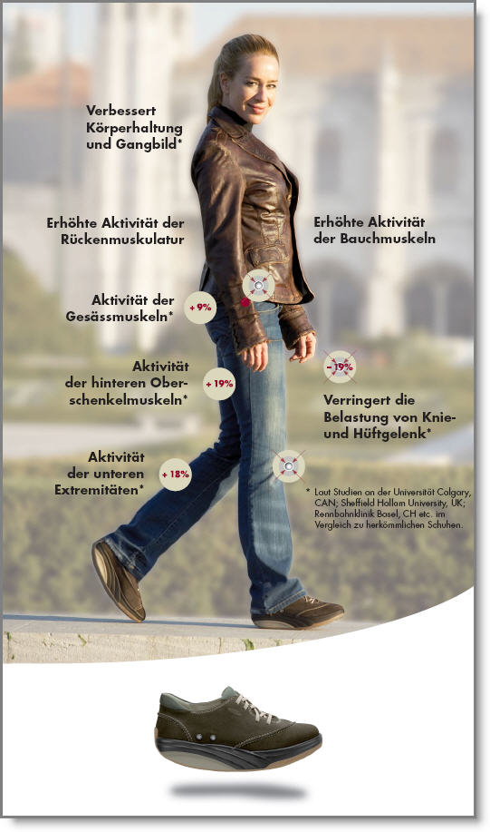 einen aufrechteren und eleganteren Gang. Der MBT dehnt, kräftigt, durchblutet
